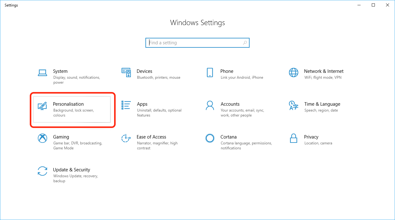 - In Settings, open Personalisation.